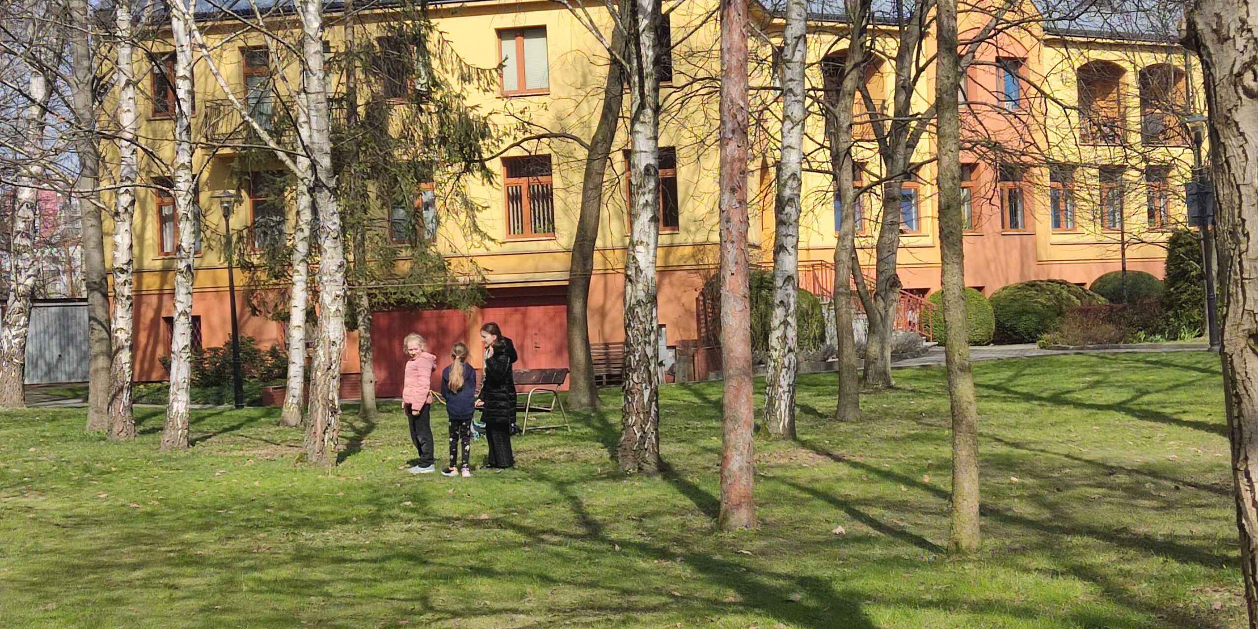 w ciepłe dni spędzali czas w ogrodzie lub na placu zabaw