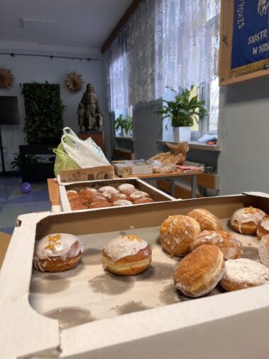 W tym roku została również przeprowadzona akcja sprzedaży słodkości. Uczniowie 7 i 8 klasy sprzedawali pączki nie tylko uczniom i pracownikom szkoły, ale też innym osobom, na przykład rodzicom uczniów naszej szkoły. Wszystkim kupującym i rozkoszującym się smakiem pączków dziękujemy!!!. Zebraliśmy 1780zł i 50 gr.