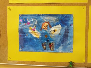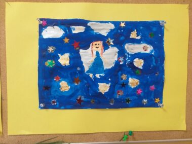 Nasza “Plastyka dla smyka” w piątkowe popołudnie; malujemy anioły przy dźwiękach anielskiej muzyki 🎼🎵🎵.