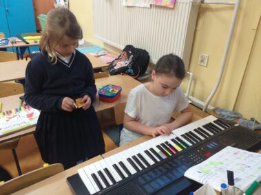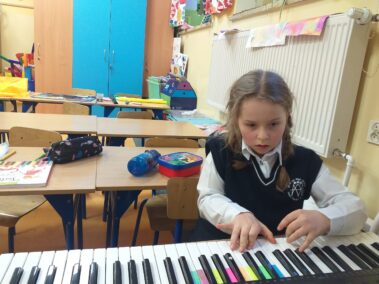 Dzień muzyki w klasie I. Dzieci przyniosły instrumenty muzyczne, a także poznawały nowe, grały i śpiewały🎼, było pięknie i wesoło.