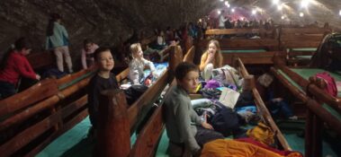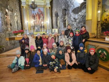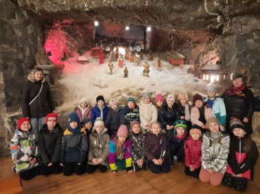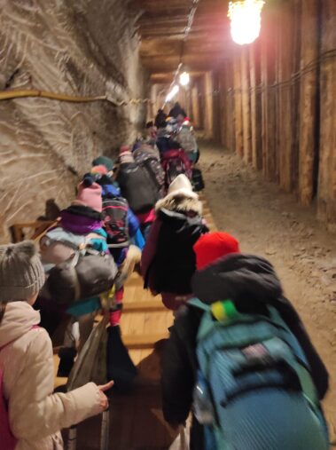 Wycieczka do Bochni była pierwszą dla klasy 2 i 3, gdzie spaliśmy. Najpierw zjechaliśmy i po rozpakowaniu, zajęciu łóżek (wszyscy chcieli spać na górze) oraz zjedzeniu kolacji każda klasa ze swoim przewodnikiem poszła zwiedzać kopalnię. Atrakcją była przejażdżka kolejką. Po powrocie mieliśmy dyskotekę, część dzieci grała w piłkę nożną, bawiła się z koleżankami i kolegami. Zmęczeni, ale pełni wrażeń udaliśmy się na wspólną modlitwę i poszliśmy spać. Rano wstawaliśmy dosyć wcześnie, ponieważ trzeba było spakować plecaki i śpiwory, zjeść pyszne śniadanie, przygotowane w kopalni. Następnie wyjechaliśmy winda na powierzchnię i autokarami udaliśmy się do Niepołomic. Tam zwiedzaliśmy zamek. Okazało się, że prócz wspaniałych zbiorów obrazów, były też sale poświęcone zwierzętom z okolic oraz tym egzotycznym. Po intensywnym zwiedzaniu autokarami wróciliśmy do szkoły. Ta wycieczka na długo zostanie w pamięci.