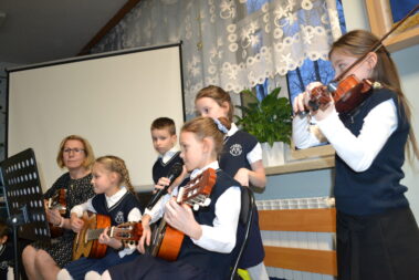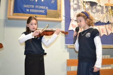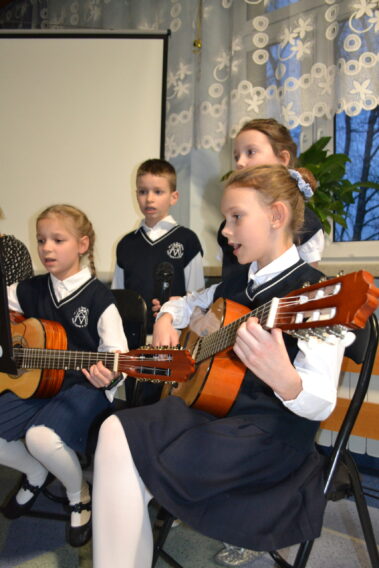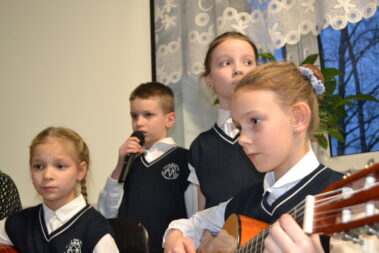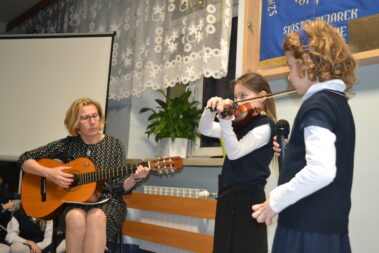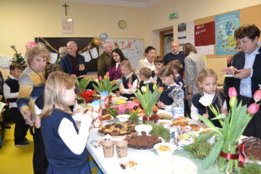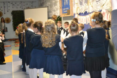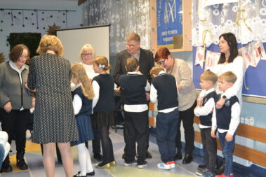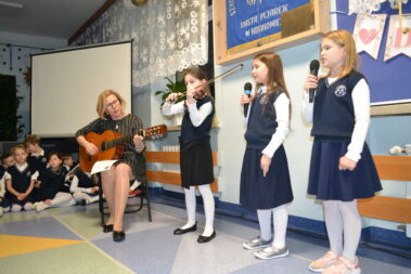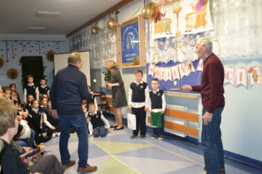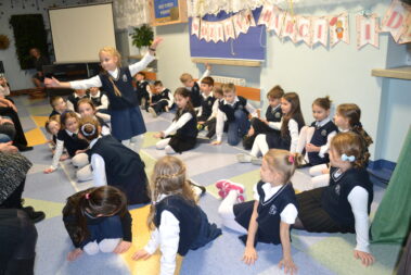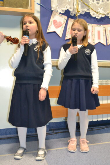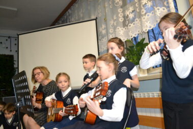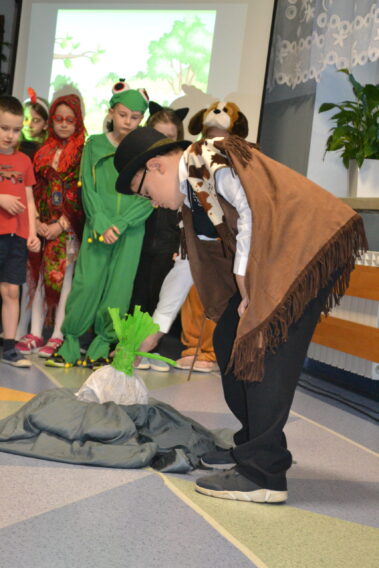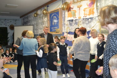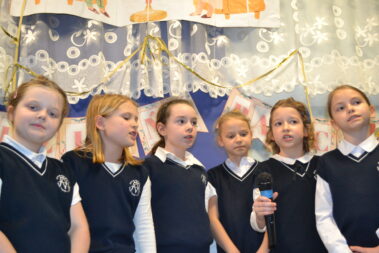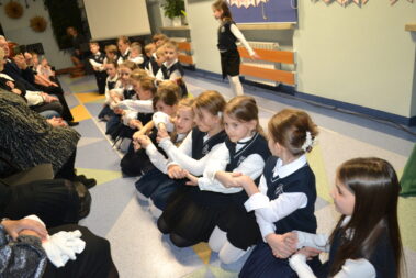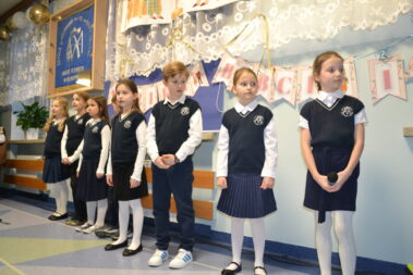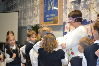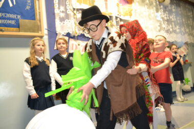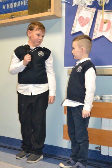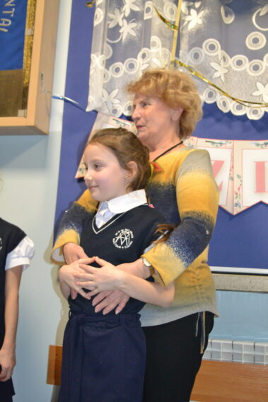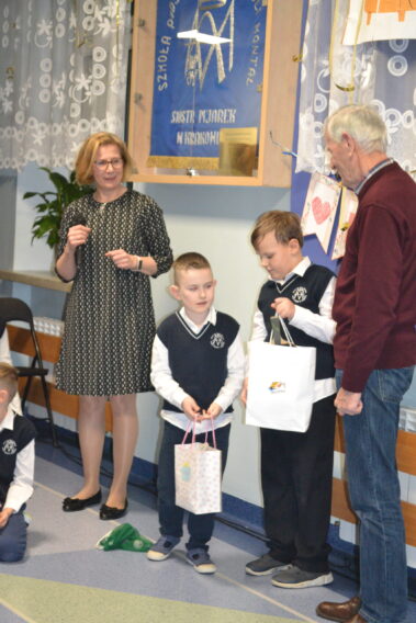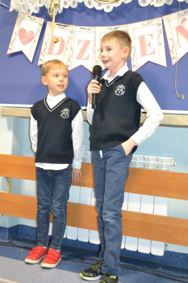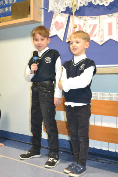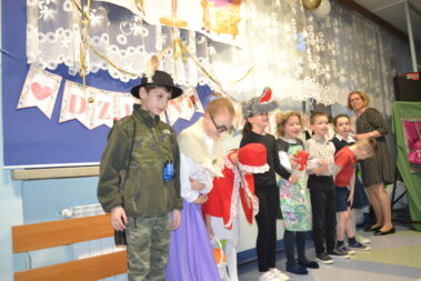 Babcia i Dziadek to bardzo ważne osoby w życiu każdego dziecka. Dlatego w tym szczególnym dniu – 26 stycznia 2024 r. uczniowie klasy 2 postanowili uczcić to piękne Święto, zapraszając najukochańsze babcie i dziadków na uroczystość przygotowaną specjalnie dla nich. W pięknie udekorowanym szkolnym korytarzu były tańce, piosenki, inscenizacja, gra na instrumentach a także układ gimnastyczny z szarfą. Mali artyści z przejęciem i zaangażowaniem odgrywali swoje role, a czcigodni goście ze wzruszeniem odbierali miłe słowa, kierowane pod ich adresem. Wiele radości i uśmiechu sprawiły babciom i dziadkom zabawy i konkursy wspólnie z wnukami. Dopełnieniem uroczystego spotkania był słodki poczęstunek, podczas którego wnuczęta złożyły życzenia przybyłym gościom i podarowały swoim bliskim upominki.