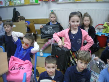 Świętowanie pierwszego dnia wiosny w szkołach niegdyś wiązało się albo z topieniem marzanny, albo z dniem wagarowicza. W naszej szkole z inicjatywy Samorządu Uczniowskiego odbył się 21 marca Dzień bez plecaka. Wbrew pozorom nie chodziło wcale o przybycie do szkoły bez plecaka i zostawienie w domu wszystkich niezbędnych w szkole rzeczy. Zabawa polegała na tym, aby korzystając ze swojej pomysłowości i sprytu czymś ten plecak zastąpić. Uczniowie klasy pierwszej popisali się wyjątkową fantazją i kreatywnością. Okazało się, że idealnie zamiast plecaka może posłużyć między innymi: walizka, skórzana teczka, plastikowe wiaderko, garnek, koci transporter, pojemnik na ciasto, skrzynka na narzędzia, torebka plażowa, wiklinowy koszyk, etui od instrumentu czy dziecięcy wózek. Akcja wywołała dużo uśmiechów na twarzach dzieci i pozytywnej energii.
