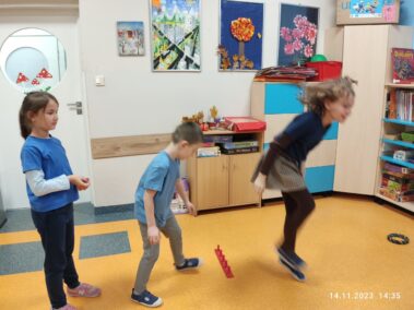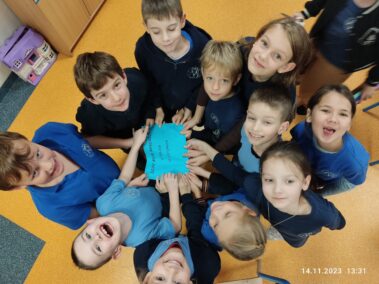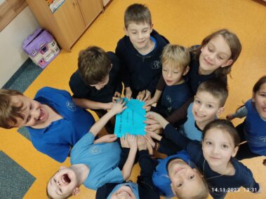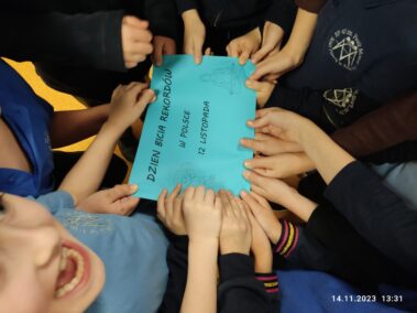 W listopadzie w naszej świetlicy wraz z klasą II świętowaliśmy Dzień Bicia Rekordów. Z tej okazji ustanawialiśmy nasze własne małe rekordy, ale przede wszystkim dobrze się bawiliśmy. W naszych zawodach pojawiły się takie konkurencje jak: najdłuższe imię i nazwisko, najkrótsze imię i nazwisko, najdłuższe włosy, najwięcej odbić piłeczki pingpongowej, najdłuższy spacer z woreczkiem na głowie. W naszym przypadku rolę woreczka pełniło pluszowe serce, więc z ochotą pełni miłości maszerowaliśmy po sali. Pojawiła się również konkurencja, kto najdłużej wytrzyma w ciszy, bez wydawania żadnych odgłosów lub w pozycji jaskółki, czy też stojąc na jednej nodze. Niektóre konkurencje okazały się tak proste dla naszych zawodników, że musieliśmy je utrudniać poprzez rozśmieszanie. Na koniec wszyscy uczestnicy dostali pamiątkowe dyplomy. Świetnie się przy tym bawiliśmy i na pewno jeszcze kiedyś powtórzymy taki dzień.