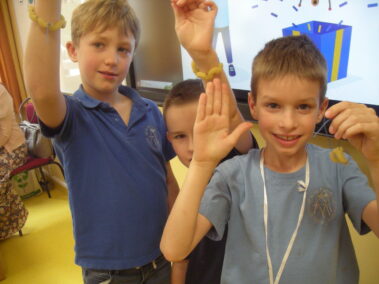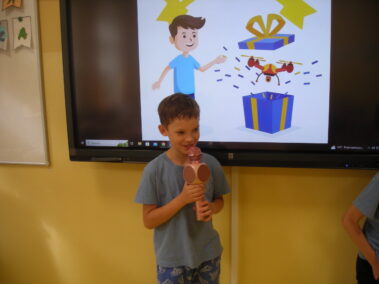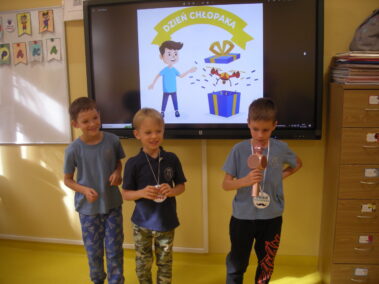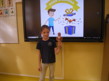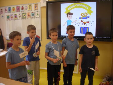 Wielką niespodziankę sprawiły dziewczynki i rodzice z klasy II swoim kolegom z okazji Dnia Chłopaka. W tym dniu dziewczynki oprócz tradycyjnych życzeń wręczyły kolegom prezenty w postaci świecących breloczków oraz odznak Super Chłopaków. Na chłopców czekały też w sali owocowe jeżyki. Dziewczynki przygotowały także dla swoich kolegów bardzo ciekawe, choć niełatwe konkurencje. Obchody Dnia Chłopaka w klasie drugiej stały się doskonałą okazją do integracji zespołu oraz wspólnej zabawy.
