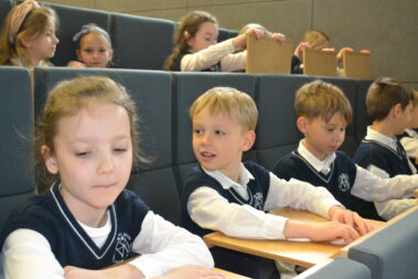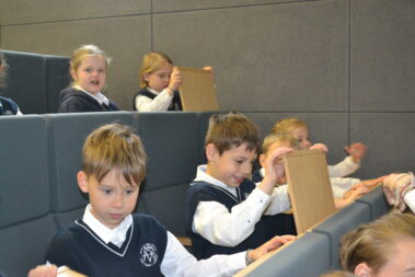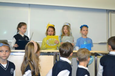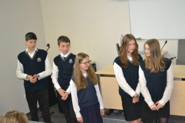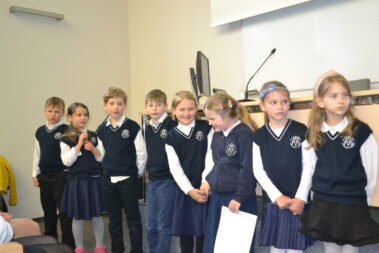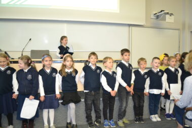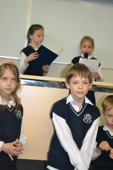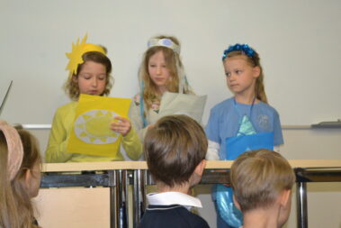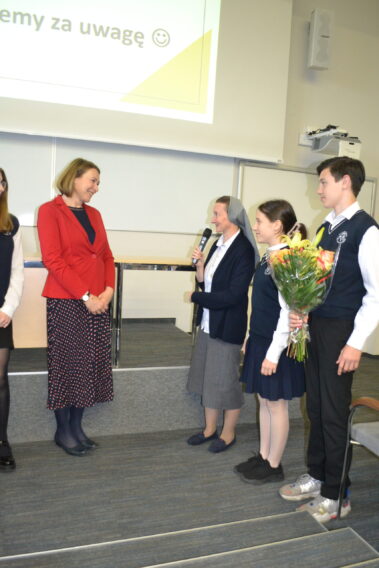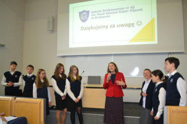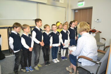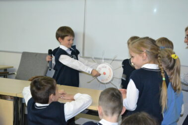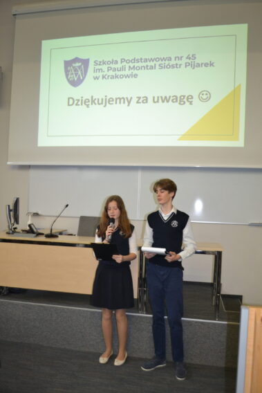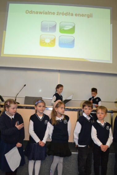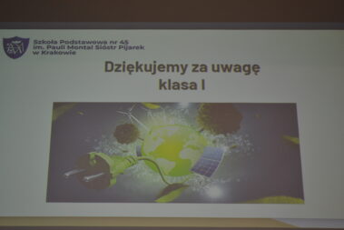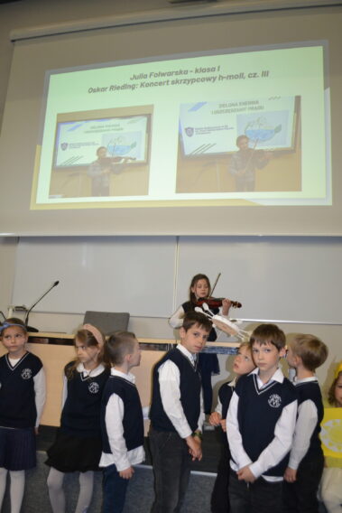 Ostatnie wystąpienie należało do najmłodszych uczestników, czyli uczniów klasy I. Zaprezentowali oni międzynarodowy projekt programu eTwinning pt.: „The Green Energy Savers”. Tematyką główną projektu są zagrożenia przyrodnicze i ekologiczne, które napotyka planeta Ziemia ze strony człowieka. Partnerami tej przygody są dzieci ze szkół z Grecji, Litwy, Estonii i Polski. Uczniowie pracują pod czujnym okiem Pani mgr Edyty Imos. Wystąpienie „pierwszaków” zakończył koncert skrzypcowy Julii Folwarskiej, laureatki Konkursu Instrumentalnego im. R. Twardowskiego w Puławach oraz X Ogólnopolskiego Konkursu Skrzypcowego Mistrz Literatury Dziecięcej Oskar Rieding.