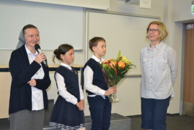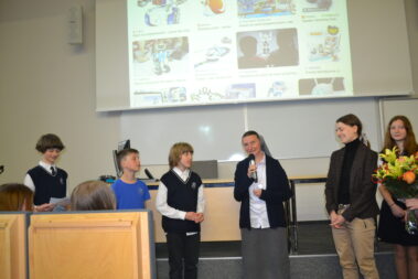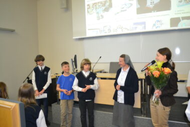 Trzeci wykład związany był z odkrywaniem i rozwojem talentów uczniowskich, szczególnie w zakresie informatycznym, nastawionym na rozwiązywanie problemów. Wystąpili: Marcin Filemonowicz-Skoczek (kl. 4), Krzysztof Blaschke (kl. 5), Michał Czerwiński (kl. 6). Dzięki udziałowi w projekcie „Centrum Mistrzostwa Informatycznego”, uczniowie uczestniczący w zajęciach w ramach kółka informatycznego mieli nie tylko możliwość rozwoju swoich zainteresowań i talentów ale również szansę na wykorzystanie i sprawdzenie swojej wiedzy w zawodach algorytmicznych i projektowych. Młodzi programiści awansowali do finału III Ogólnopolskich Zawodów Projektowych Centrum Mistrzostwa Informatycznego. Zespół pracuje pod opieką Siostry Małgorzaty Jarosz oraz Pana Kamila Wiśniewskiego.
