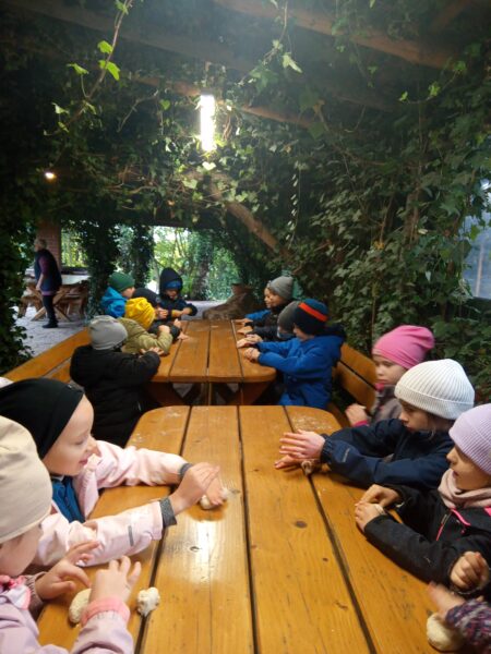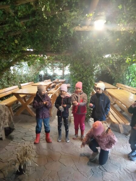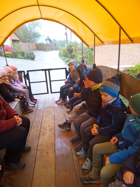 W dniu 15.10.25 r. klasa pierwsza, wybrała się na wycieczkę do gospodarstwa agroturystycznego w Gruszowie. Uczniowie mieli okazję zwiedzać gospodarstwo, karmić zwierzęta hodowlane, posłuchać prelekcji o pasiece i pracy pszczelarza. Dowiedzieli się także czym są “żarna” i jak powstaje mąka, oraz ulepili własnoręcznie swoje ludziki z mąki pełnoziarnistej. Największą atrakcją była przejażdżka wozem zaczepionym do ciągnika. Mimo niesprzyjającej aury, humory wszystkim dopisywały .Fotorelacja poniżej.