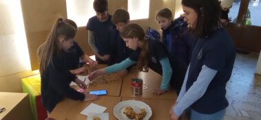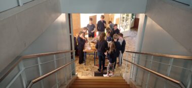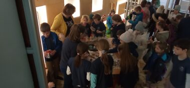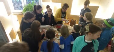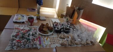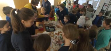 Uczniowie klasy V wraz z rodzicami zorganizowali kiermasz, na którym sprzedawali wykonane przez siebie ciastka, ciasta, gorącą czekoladę, świece i zakładki do książek. Dzięki hojności kupujących zebrali ponad 1000zł. Uzyskaną kwotę chcą przekazać na potrzeby wybranego przez nich domu dziecka.