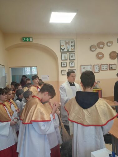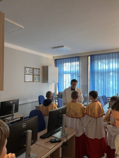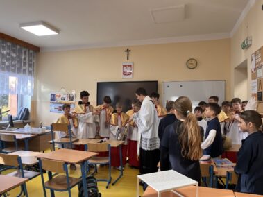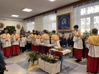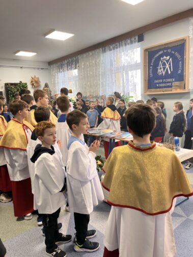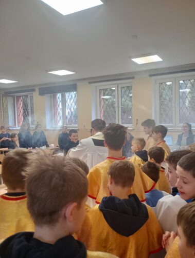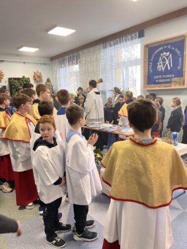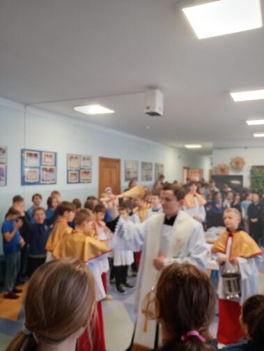 Dziękujemy o. Rafałowi oraz ministrantom za poświęcenie czasu i wniesienie Bożej radości do naszej szkoły. Niech otrzymane błogosławieństwo towarzyszy nam przez cały rok, przynosząc pokój, radość i sukcesy w nauce.