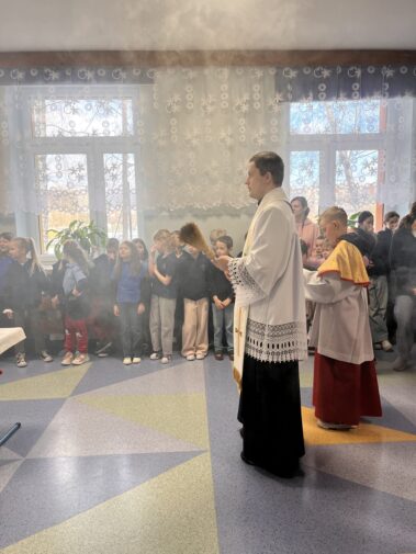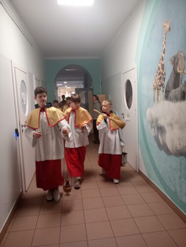 W dniu 17 stycznia bieżącego roku w naszej szkole odbyła się szczególna uroczystość – kolęda, czyli tradycyjne błogosławieństwo kapłana. W wydarzeniu uczestniczył o. Rafał Stenka SP, który w towarzystwie ministrantów odwiedził wszystkie pomieszczenia szkoły, przynosząc ze sobą Boże słowo, duchowe wsparcie i radość.