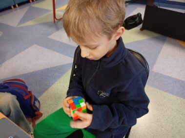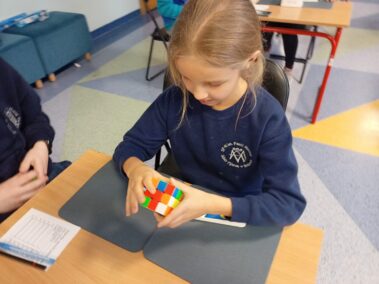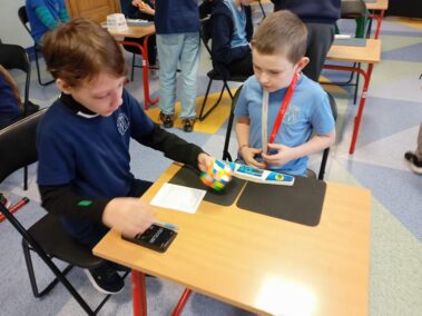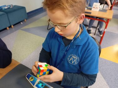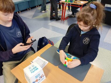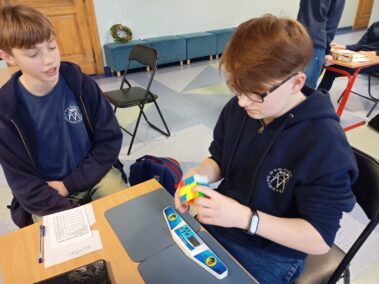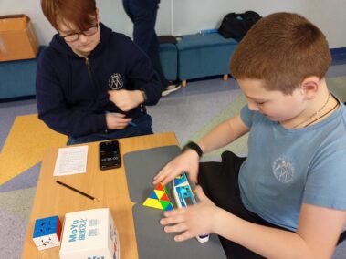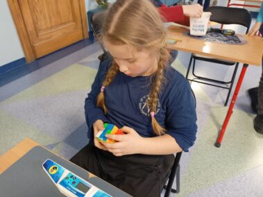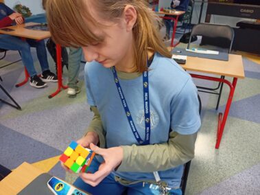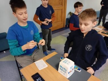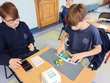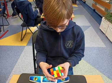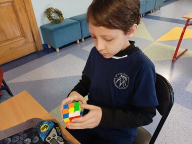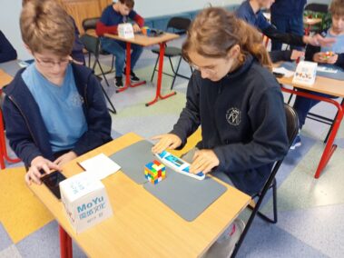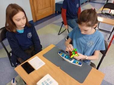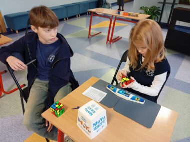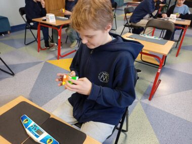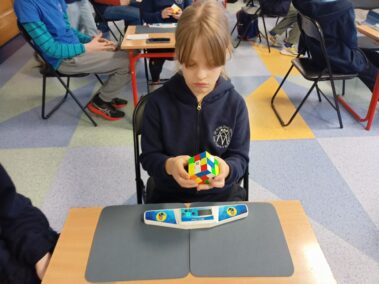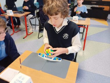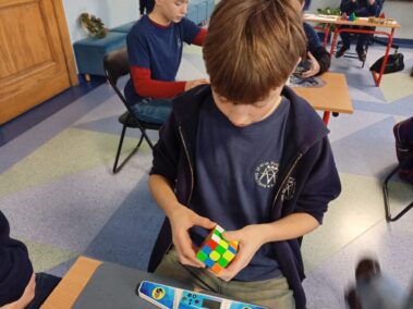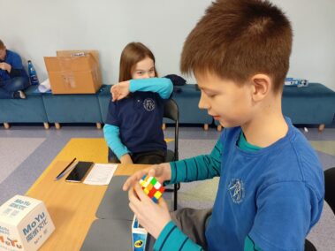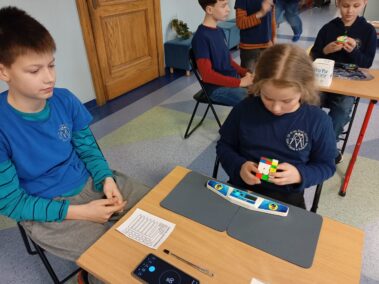 Z inicjatywy uczniów: Michała Bieryta z klasy VII i Dominika Śledzia z klasy VI, pod okiem opiekuna s. Małgorzaty Jarosz, w naszej szkole odbył się I Szkolny konkurs układania kostki Rubika. Konkurs był otwarty dla wszystkich zgłoszonych chętnych i cieszył się dużym zainteresowaniem. Uczestnicy mieli okazję rywalizować w różnych kategoriach, starając się jak najszybciej i najdokładniej ułożyć kostkę w różnych wariantach.