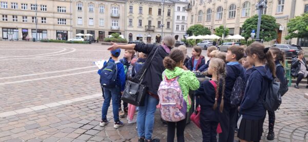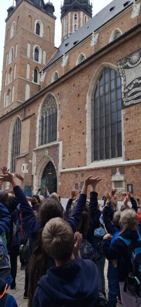 Jesteśmy jużklasie 3 i przygotowujemy się do udziałukonkursieKrakusek“. dniu 16 września udaliśmy się na 3,5 godzinny spacer Drogą Królewską. Towarzyszyła nam Pani przewodniczka, któraciekawy sposób opowiadałakrakowskich artystach. Wędrując, oglądaliśmy i podziwialiśmy ich dziełakościołach. Praca w grupachkartami pracy pomagała utrwalać zdobyte informacje. W trakcie przerwy odpoczywaliśmy i jedliśmy zakupione obwarzanki. Teraz czekamy na warsztatymuzeum.
