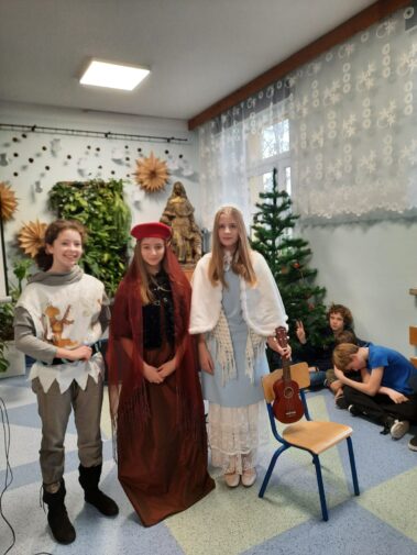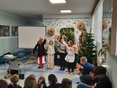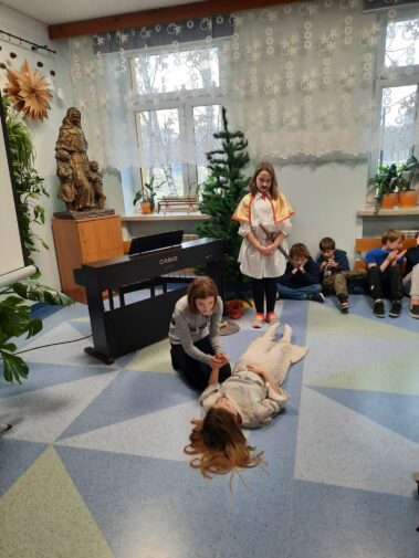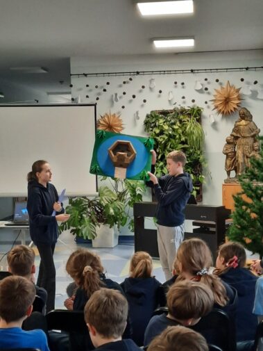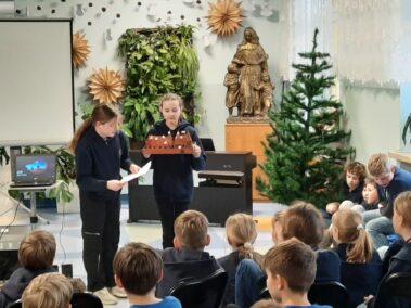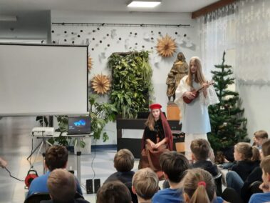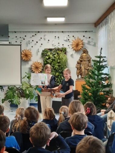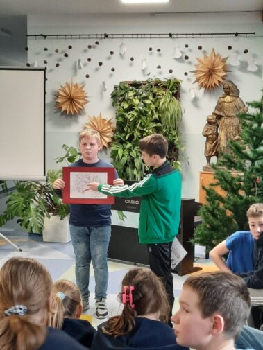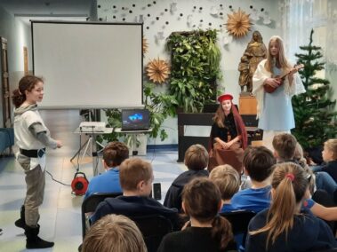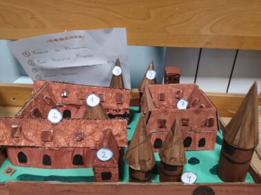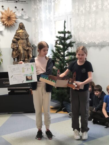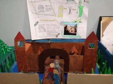 Uczniowie klasy szóstej z wielkim zaangażowaniem i pomysłowością przygotowali zadania projektowe związane z lekturą powieści Henryka Sienkiewicza “Krzyżacy”. Wśród projektów znalazły się scenki teatralne, makiety budowli średniowiecza (zabudowania wiejskie, siedziba rycerska, zamek), plakaty, prezentacje multimedialne oraz model zamku 3D wykonany w grze Minecraft. Wszyscy uczniowie samodzielnie wybierali temat oraz formę zadania, a następnie prezentowali owoce swojej pracy swoim młodszym koleżankom i kolegom z klas IV i V.