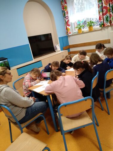 Uczniowie bardzo chętnie i z dużym zaangażowaniem rozwiązywali według autorskiego scenariusza między innymi ćwiczenia logiczne ogólnorozwojowe, płynności myślenia, słowa, uwagi oraz poznali drzewo ambitnego celu i gałąź logicznego myślenia, opracowali według nich rozwiązania własnych celów. Na zakończenie spotkania otrzymali autorskie dyplomy wraz z drobnymi pamiątkami. Podczas twórczego spotkania panowała wspaniałą atmosfera, a dzieci wykazały się wysoką kulturą osobistą, taktem, wiedzą, kreatywnością. Dziękujemy uczniom i ich rodzicom za aktywny udział w tym przedsięwzięciu.