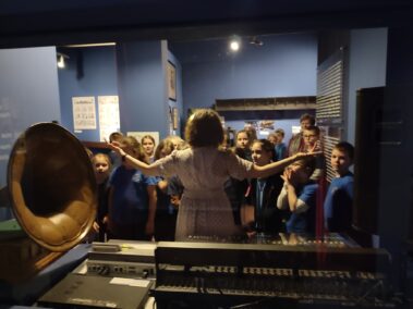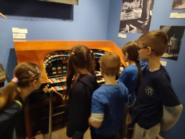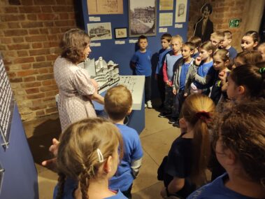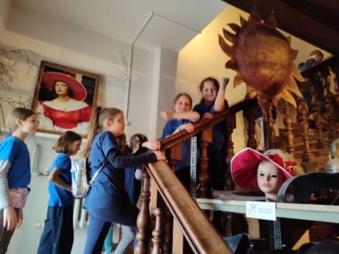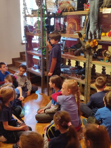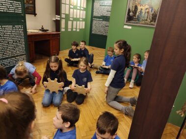 W piątek 14 kwietnia klasa druga wybrała się do Domu Pod Krzyżem na wystawę “Maszyneria teatru”. Uczniowie poznali ciekawostki o tym, kto i co jest ważne w teatrze. Dowiedzieliśmy się na przykład, że na każdym przedstawieniu w teatrze musi być strażak i że pod sceną w Teatrze Słowackiego jest wielka dziura. Na parterze muzeum po opowieściach pani przewodnik mogliśmy sami korzystać z różnych teatralnych sprzętów. Ciągnęliśmy sznury, które opuszczały kurtynę i elementy dekoracji. Mówiliśmy do mikrofonu, przełączaliśmy dźwięki, wydawaliśmy odgłosy burzy tak jak dawniej robiło się to w teatrze, kiedy nie było jeszcze komputerów. Na pierwszym piętrze pani opowiadała o różnych ręcznie robionych elementach przedstawienia, strojach i rekwizytach, a potem mogliśmy sami przymierzyć teatralne stroje. Były trochę za duże. Malowaliśmy też ręce specjalnymi kredkami do charakteryzacji. Każdy też mógł wejść do budki suflera. Na drugim – i ostatnim – piętrze stworzyliśmy razem całą machinę teatralną – jak od pomysłu dojść do przedstawienia, jak to zrealizować. Wszystkim bardzo się podobało i nikt się nie nudził. Polecamy koleżankom i kolegom z innych klas.