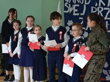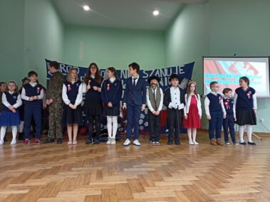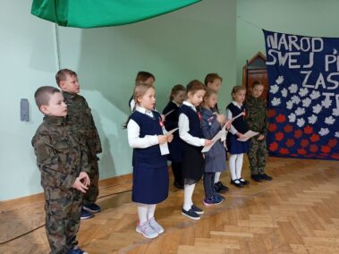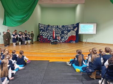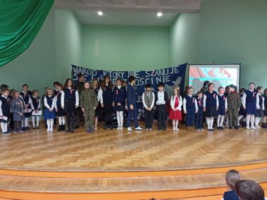 Narracja przeplatana była wspólnym śpiewem pieśni patriotycznych, recytacją wierszy oraz scenkami teatralnymi.