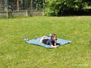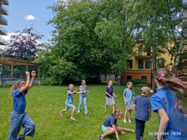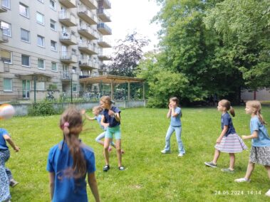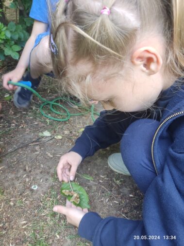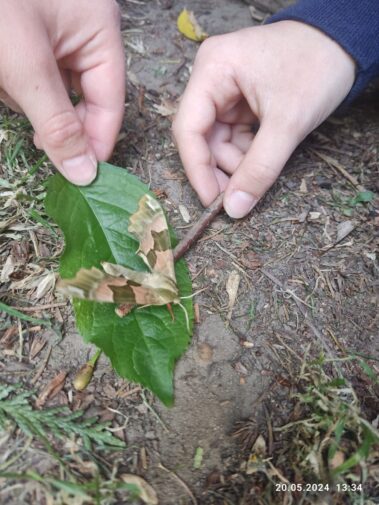 Korzystając z pięknej pogody, dzieci w świetlicy spędzają czas na świeżym powietrzu, grają w gry zespołowe, odpoczywają na kocach, biegają, skaczą, robią “gwiazdy” i obserwują przyrodę. Udało się im spotkać ciekawego gościa w naszym ogrodzie – nocnego motyla o nazwie nastrosz lipowiec. Chociaż to pospolity motyl w Polsce, to nie tak łatwo go dostrzec w ciągu dnia. Motyle te odpoczywają na korze drzew, co przy ich umaszczeniu sprawia, że trzeba bardzo mocno wytężać wzrok, aby je zauważyć. Naszym uczennicom się to udało.:)
