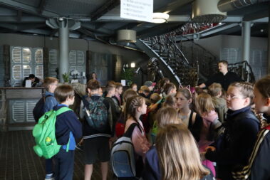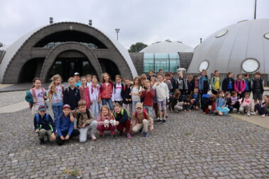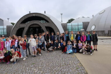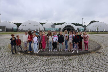 29 maja uczniowie kl. 2 i 3 wraz z wychowawcami zwiedzali profesjonalne studio filmowe ALVERNIA PLANET. Wyjazd uświetniony został warsztatami pt. „Nie wszystko co widzisz i słyszysz jest prawdą”. Spotkanie miało na celu poszerzenie wiedzy z zakresu edukacji filmowej oraz zaprezentowanie architektury studia. Alvernia Planet to ośrodek składający się z 13 kopuł połączonych ze sobą przeszklonymi łącznikami. Na pierwszy rzut oka można byłoby się spodziewać, że jest to centrum kosmiczne, jednak obiekt obecnie funkcjonuje jako studio filmowe, w którym realizowano wiele reklam i filmów, np. niektóre sceny do najnowszego filmu pt. „Akademia Pana Kleksa”. Podczas zwiedzania studia została wyświetlona scena z filmu Jerzego Skolimowskiego „11 minut” oraz zostały zaprezentowane zdjęcia z planu podczas kręcenia tej sceny. Po pokazie przewodnik wytłumaczył jak 3-piętrowe rusztowanie w hali zmieniło się w 11 piętrowy budynek w środku Warszawy. Dzięki warsztatom edukacyjnym dowiedzieliśmy się między innymi: czym jest plan filmowy, kto pracuje przy produkcji filmu, jak powstaje scenografia, jak tworzy się efekty specjalne oraz jak wygląda praca kaskadera czy realizacja profesjonalnego udźwiękowienia filmu w certyfikowanym studiu nagrań.
