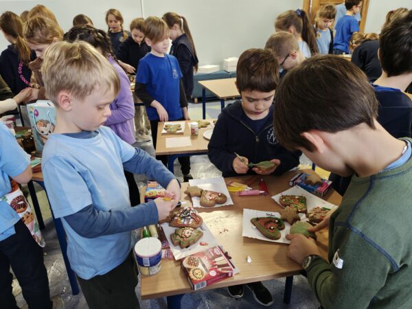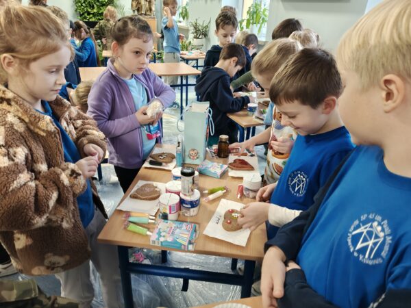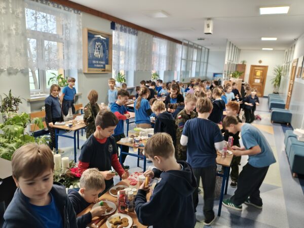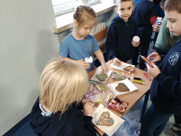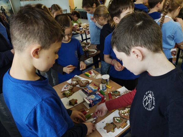 W dniu 16.12. uczniowie klas 1–3 spotkali się na holu szkoły, aby wspólnie dekorować świąteczne pierniki. W radosnej atmosferze dzieci z ogromnym zaangażowaniem wykazały się kreatywnością i bogatą wyobraźnią, tworząc kolorowe, niepowtarzalne ozdoby. Wydarzenie było okazją do integracji, wspólnej zabawy oraz rozwijania zdolności artystycznych najmłodszych.