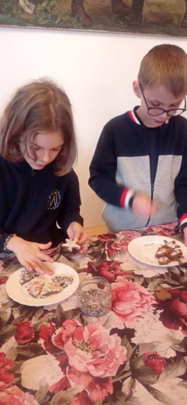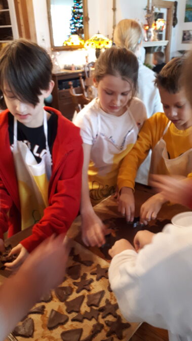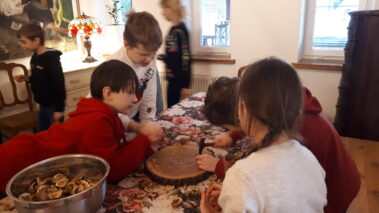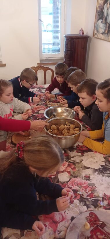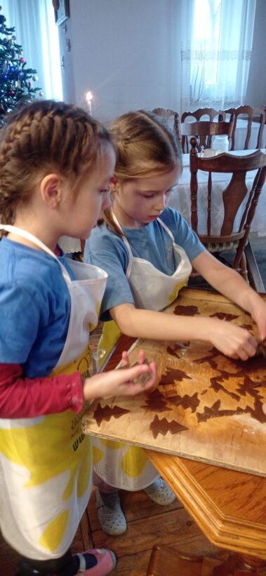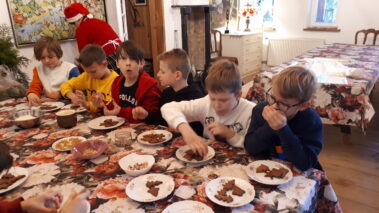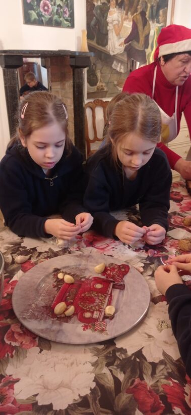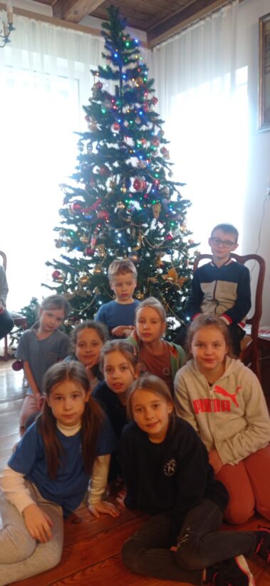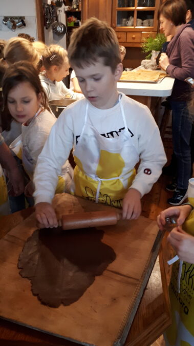 7 grudnia klasy 2 i 3 wyruszyły autokarem na świąteczną wycieczkę do Niezwojowic. Wzięliśmy udział w warsztatach kulinarnych, w czasie których: miażdżyliśmy czosnek do barszczu, rozbijaliśmy orzechy, wyrabialiśmy ciasto na uszka, które następnie lepiliśmy i gotowaliśmy. Każdy miał okazję wałkować ciasto na pierniczki, wykrawać je i czekać aż się upieką. Potem ozdabialiśmy je i każdy zabierał swoje do domu. By przypomnieć sobie zwyczaje wigilijne, dzieliliśmy się opłatkiem, zasiedliśmy do stołu i zjedli barszcz czerwony z wykonanymi własnoręcznie uszkami. Śpiewaliśmy kolędy przy choince i mogliśmy zobaczyć, jak wyglądały dawne świeczki na choince. Ciekawym punktem było wyjście do pomieszczeń, gdzie pan zaprezentował nam obrazy ze wszystkimi księgami „Pana Tadeusza”. Każdy zabierał przygotowane sianko, które może położyć z bliskimi na stole wigilijnym. Teraz odliczamy już dni do świąt.