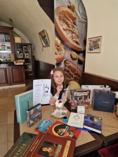 W ramach przygotowań, które trwały kilka miesięcy, uczniowie brali udział w wycieczkach po Krakowie i uczestniczyli w warsztatach muzealnych. Wiedzę uzupełniała również literatura poświęcona krakowskiej historii i kulturze oraz rodzinna gra miejska. Marysia, wygrywając eliminacje klasowe, reprezentowała nasza szkołę w finale konkursu w Collegium Maius UJ. W finale, po przeprowadzonych aktywnymi metodami rozgrywkach (quizy i test wiedzy), jury wyłoniło zwycięzców. Zdobywając I miejsce, Marysia odebrała liczne zasłużone nagrody z rąk zastępczyni prezydenta Krakowa.