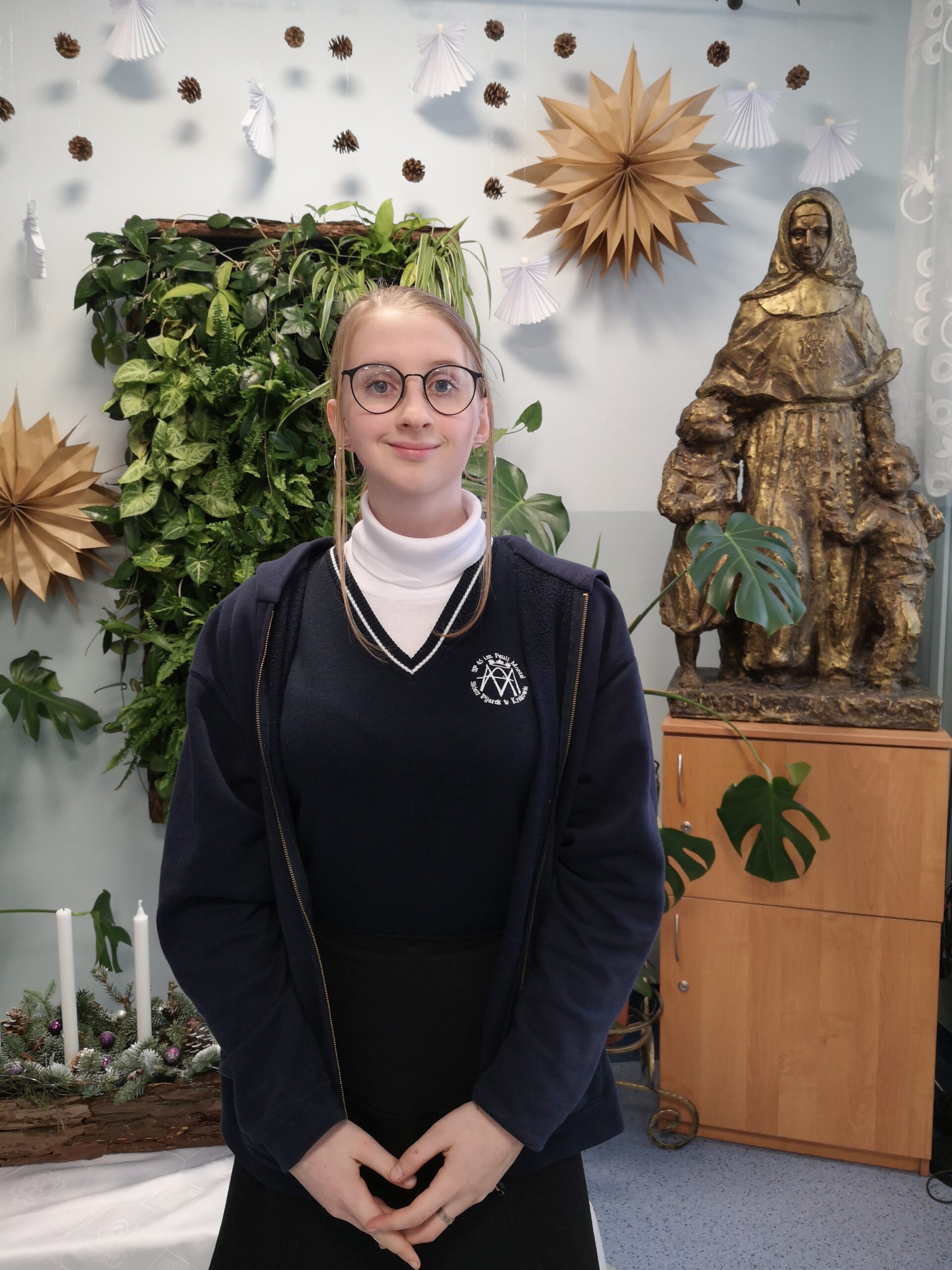 Z radością przekazujemy informację o sukcesie naszej uczennicy. Weronika Kimla z kl. VIII zajęła I miejsce w ogólnopolskim konkursie literackim “Adam Mickiewicz wielkim twórcą jest…”. Konkurs został zorganizowany przez Szkołę Podstawową nr 19 w Lublinie, pod Honorowym Patronatem Prezydenta Miasta Lublin oraz Lubelskiego Kuratora Oświaty. Na konkurs wpłynęło 129 prac z 13 województw. Serdeczne gratulacje dla Weroniki oraz jej polonistki, p. Moniki Rutkowskiej-Urbańczyk.