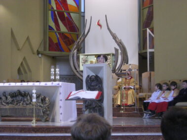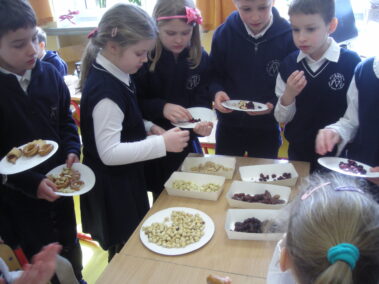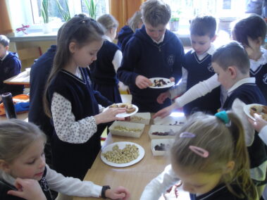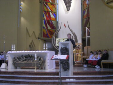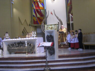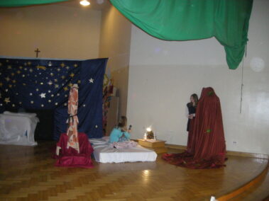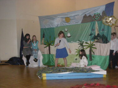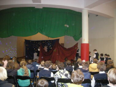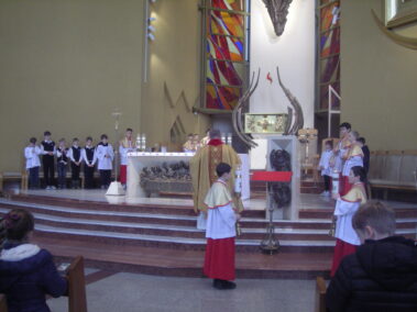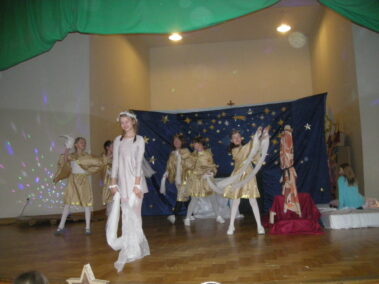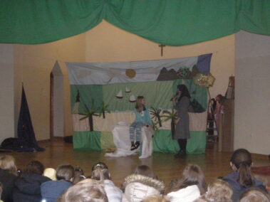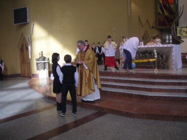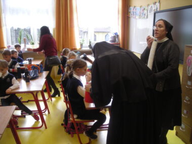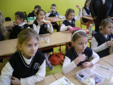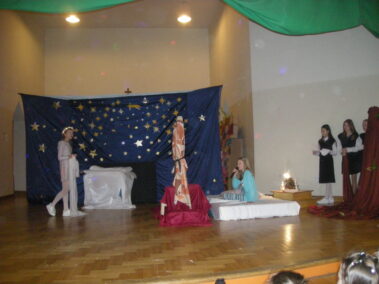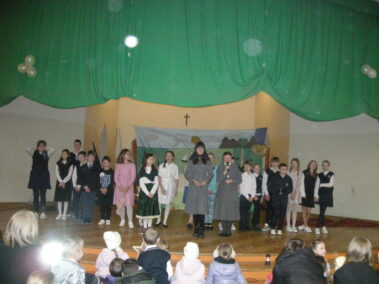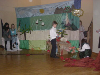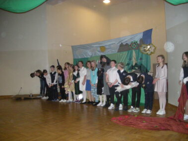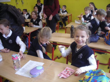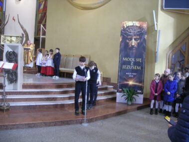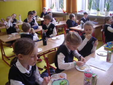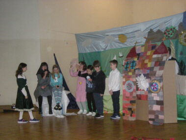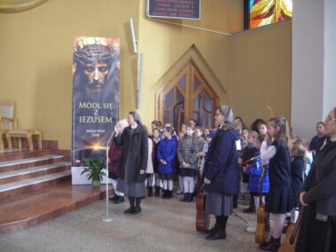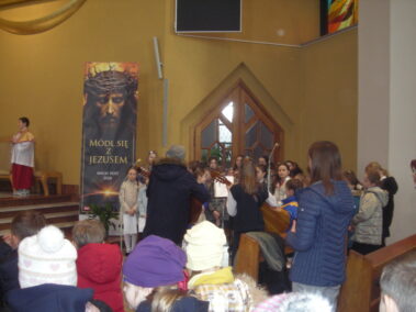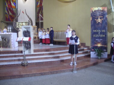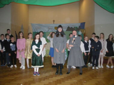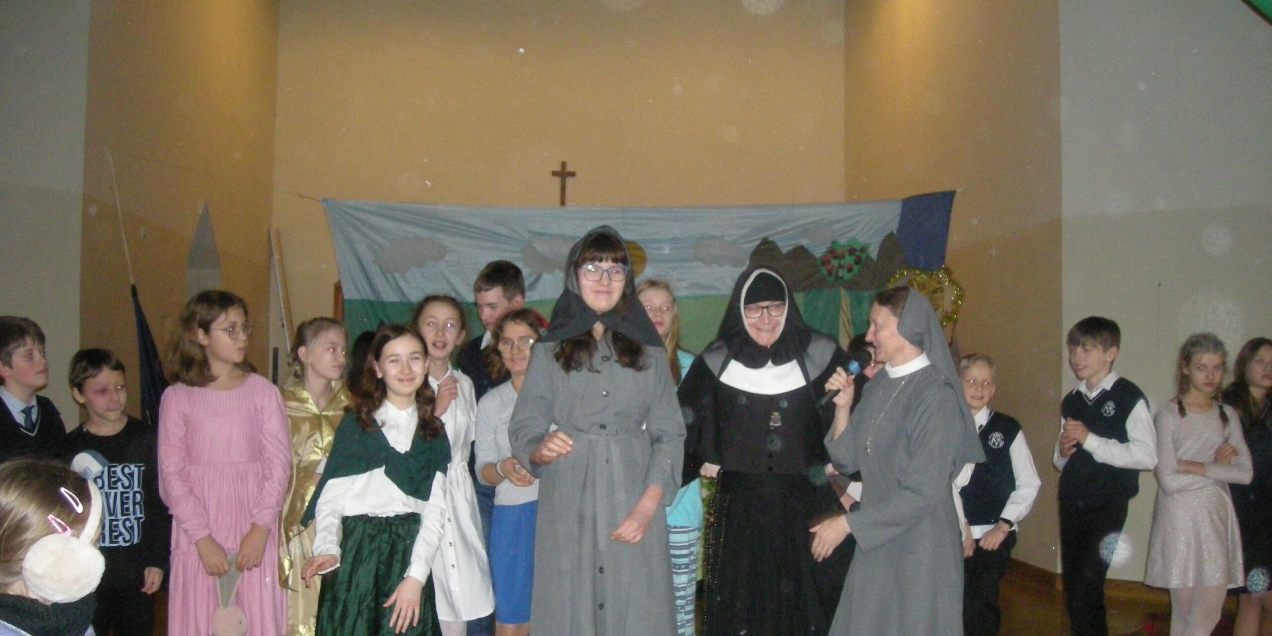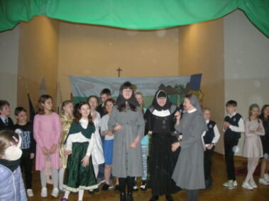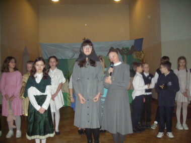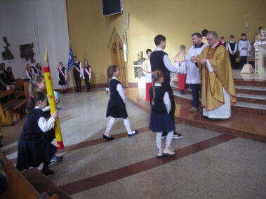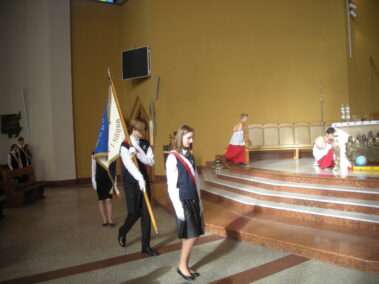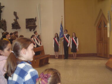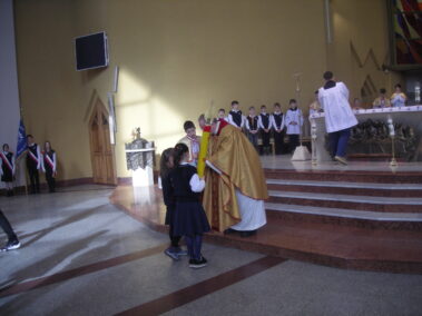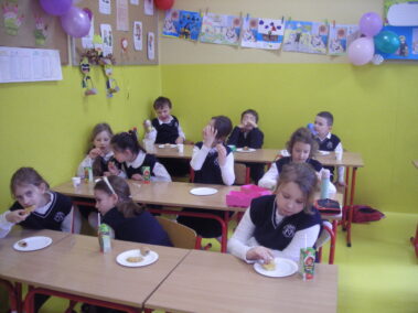 Cała społeczność szkolna modliła się podczas wspólnej Eucharystii, którą sprawował o. Tomasz Jędruch, proboszcz Parafii Matki Bożej Ostrobramskiej. Po Mszy świętej odbyła się akademia przygotowana przez Panią Agnieszkę Mach oraz uczniów z klasy V. Podczas słowno – muzycznego spektaklu pt.: „Laura i gwiazdy” młodzi artyści przybliżyli życie św. Pauli Montal. Po przedstawieniu uczniowie wraz z wychowawcami udali się do swych klas na słodki poczęstunek przygotowany przez rodziców.
