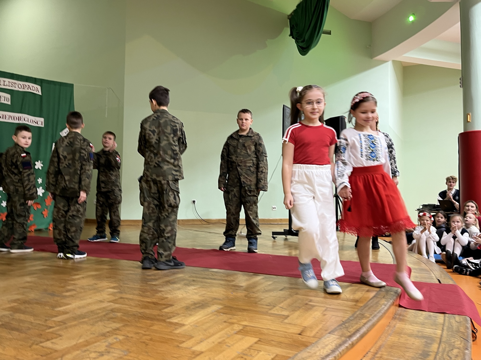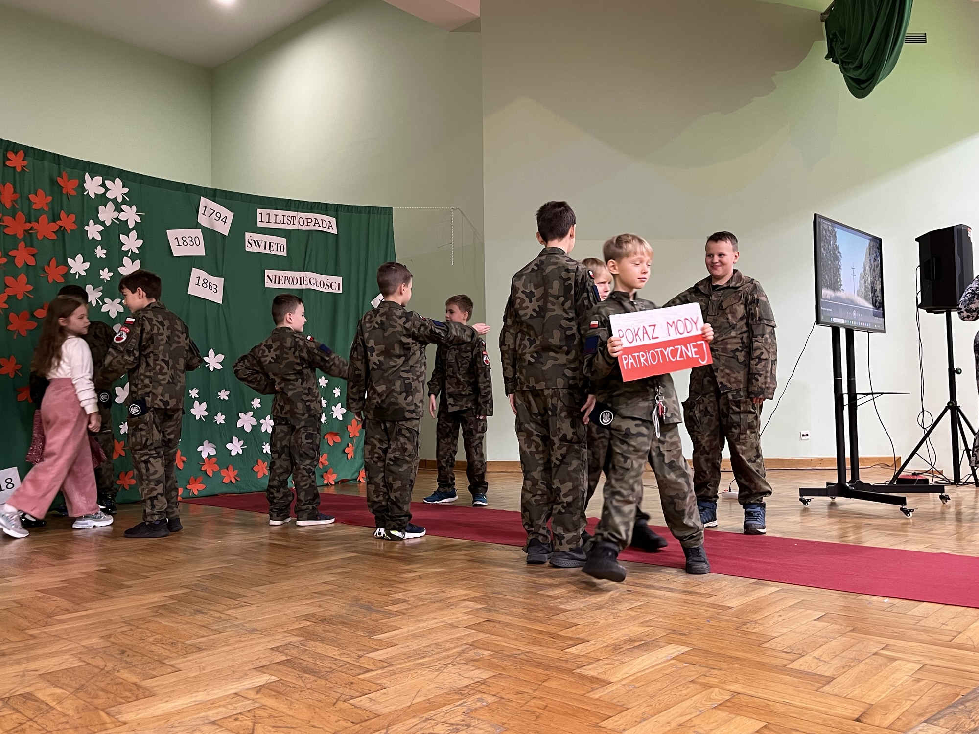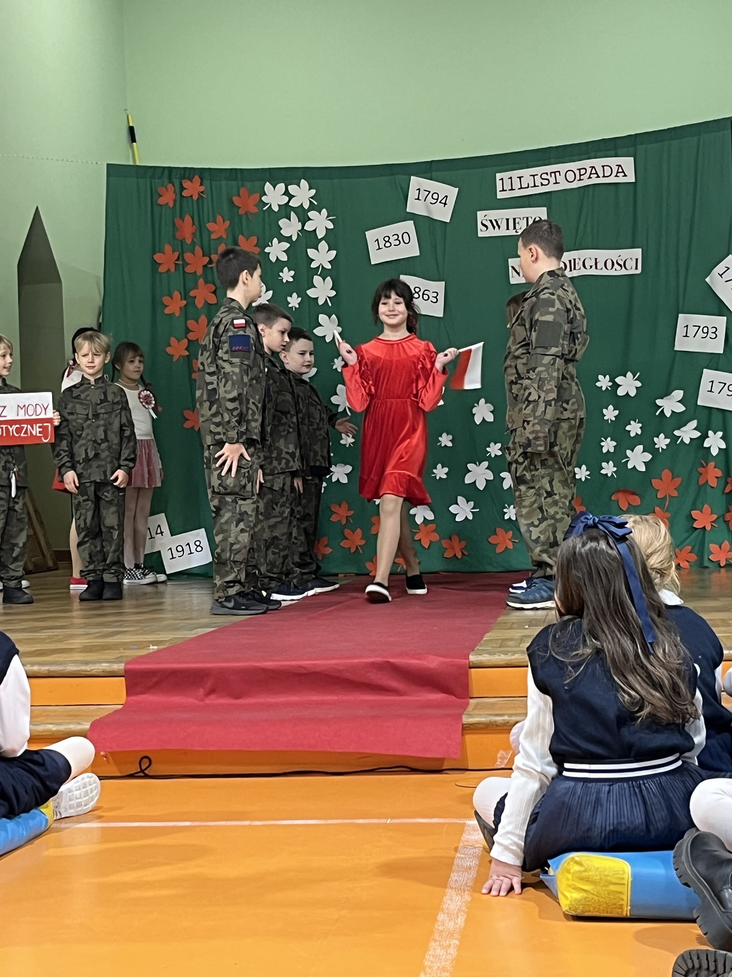 W listopadzie w naszej szkole odbyły się wyjątkowe uroczystości związane ze Świętem Niepodległości. Uczniowie klasy IV pod opieką pani Aleksandry Krajewskiej przygotowali uroczysty apel, w którym udział wzięły również Orlęta. Podczas wydarzenia zabrzmiały pieśni patriotyczne, a całość uświetnił barwny pokaz mody patriotycznej, prezentujący stroje inspirowane symbolami narodowymi.