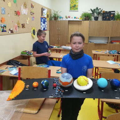 Geografia jest jedną z dziedzin nauki, która potrafi zaskakiwać. I tak właśnie klasa VI zaskoczyła nas wszystkich swoją kreatywnością. Na październikowych lekcjach geografii przerabiając Układ Słoneczny grono uczniów stworzyło jako prace dodatkową. W naszej szkole na holu powstała wspaniała wystawa na którą składają się: makiety, plakaty, a także wizualizacja Układu Słonecznego. Uczniowie wykazali się dużą pomysłowością i wiedzą, a ich modele wzbudzają uznanie uczniów i nauczycieli. Niektórzy zaskoczyli samych siebie – zdjęcia mówią same za siebie.