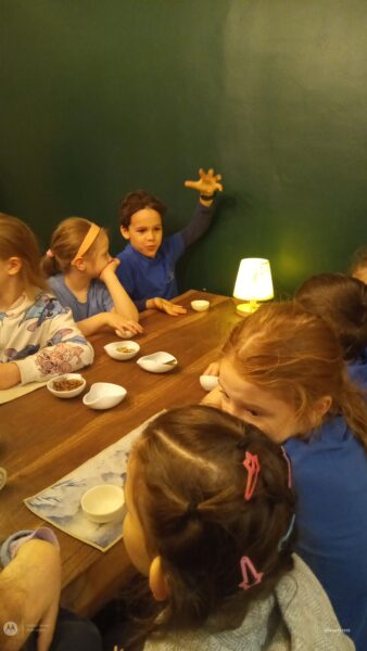 Uczniowie klasy pierwszej wzięli udział w warsztatach herbacianych zorganizowanych przez herbaciarnię “Czarka” w Krakowie. Poznali historię pochodzenia herbaty, jej rodzaje, sposoby parzenia. Mieli okazję skosztować różnych rodzajów herbat i samodzielnie przygotować swoją mieszankę naparu.