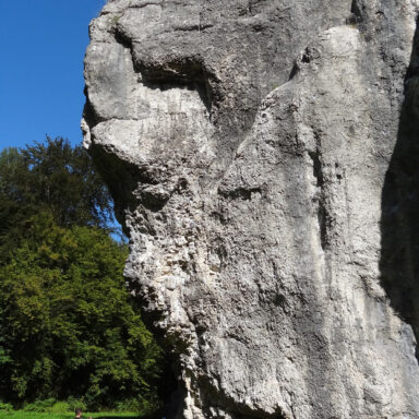 Po wyjściu z jaskini spacerowaliśmy, podziwiając malowniczy krajobraz doliny. Fotografowaliśmy różnokształtne skały oraz kibicowaliśmy wspinaczom, których napotkaliśmy na szlaku. Po tej miłej, ale wyczerpującej przechadzce, zatrzymaliśmy się na obiad w schronisku. Gdy pokrzepiliśmy się pierogami i pyszną herbatą, ruszyliśmy w drogę powrotną.