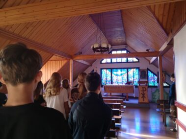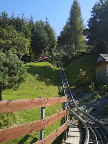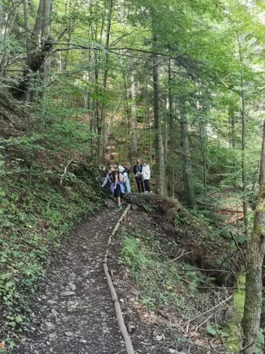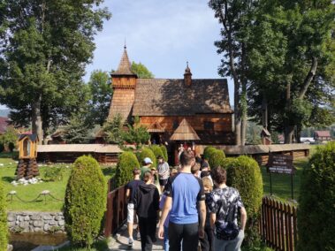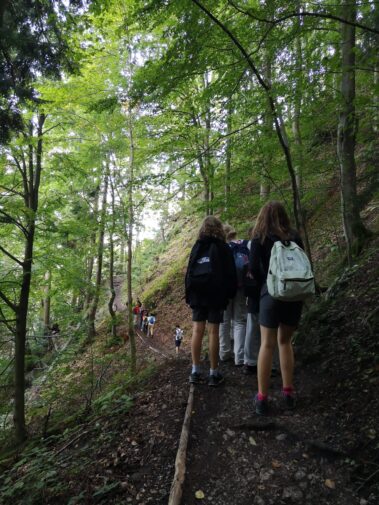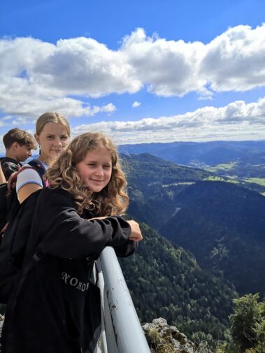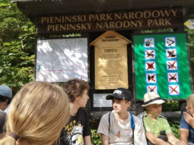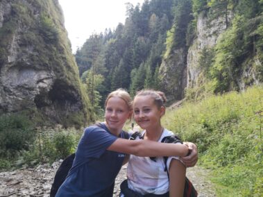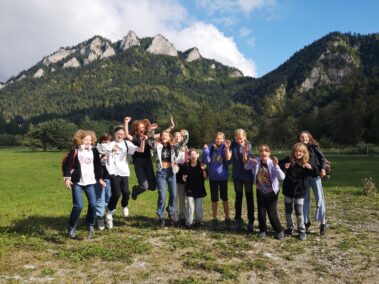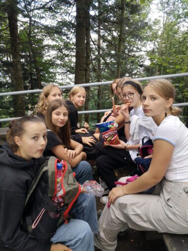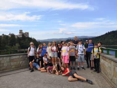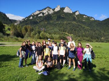 We wrześniu nasza klasa rozpoczęła nowy rok szkolny trzydniową wycieczką w góry. Była to spóźniona Zielona Szkoła, która w przypadku siódmoklasistów nie mogła się odbyć w czerwcu. Na szczęście pogoda nam dopisała i tylko w nieznacznym stopniu pokrzyżowała plany. Celem wyjazdu były Pieniny, a dokładnie Łapsze Niżne. W pierwszym dniu, pierwszym punktem programu był zabytkowy kościółek w Dębnie. Ksiądz-przewodnik bardzo ciekawie mówił o jego historii i opowiedział nam sporo ciekawostek. Następnym punktem programu był Wąwóz Papieski, który poprowadził nas do największej chyba atrakcji tego dnia, czyli do kolejki grawitacyjnej w Kluszkowcach. To była wielka frajda dla wszystkich, więc trudno było się nam zmobilizować i ruszyć w dalszą drogę. A czekały nas jeszcze ruiny zamku w Czorsztynie i, co ciekawsze, rejs gondolami na drugą stronę jeziora oraz oglądanie zapory w Niedzicy.