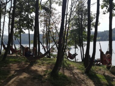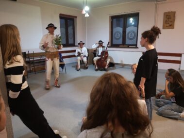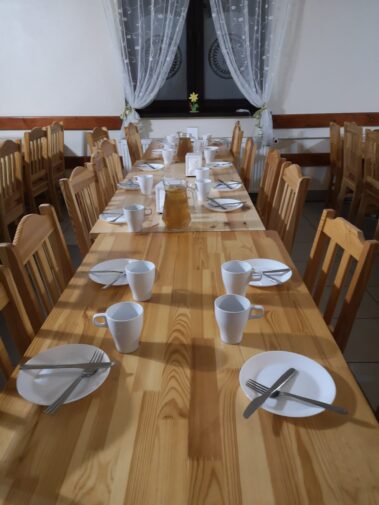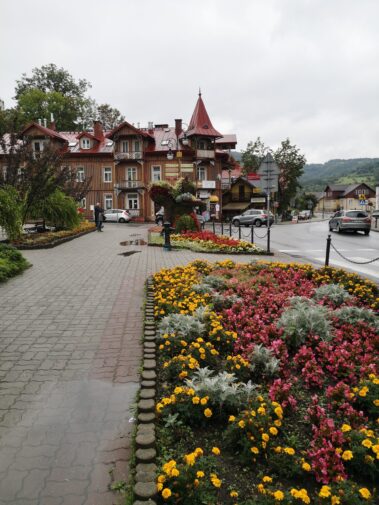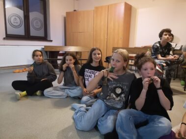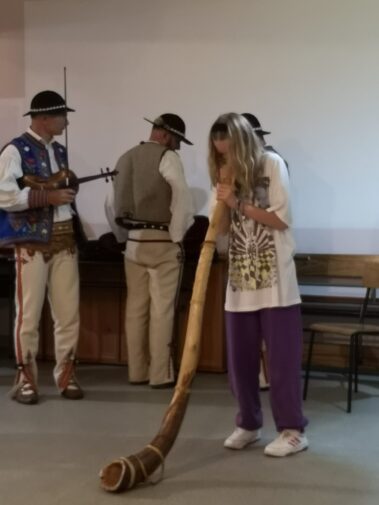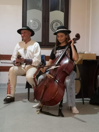 Drugi dzień pobytu nie przebiegał zgodnie z planem, bo niestety pogoda trochę namieszała. Nie mogliśmy się wyszaleć na świeżym powietrzu z powodu deszczu, jednak pojechaliśmy do Dyrekcji Parku Narodowego na zwiedzanie wystawy o przyrodzie Pienin. Ponieważ deszcz na zmianę z mżawką zniechęcał do wycieczek i spacerów, pojechaliśmy do Szczawnicy na gofry. I to był strzał w dziesiątkę. Wszyscy rzuciliśmy się na gofry, a niektórzy na dokładkę jeszcze na oscypki. Wieczór spędziliśmy na zabawach z kapelą góralską. Niektórzy z nas mogli sprawdzić się w tańcach góralskich, czy grze na trombicie.