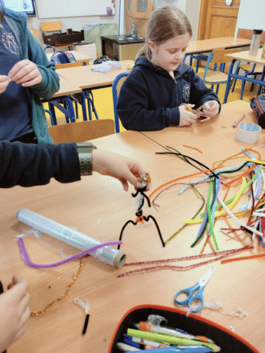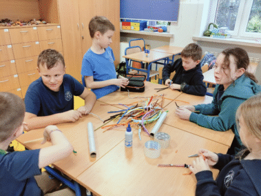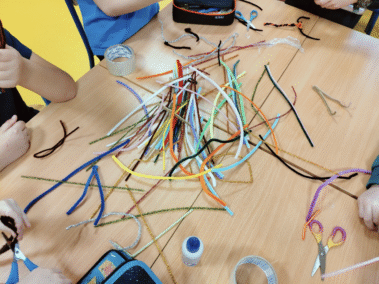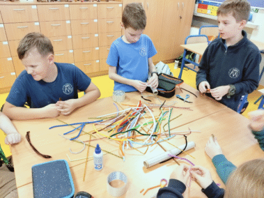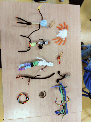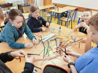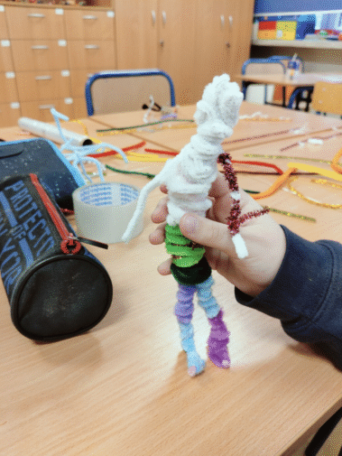 Na zajęciach świetlicowych w ramach projektu „Zabawa sztuką” uczniowie klasy III próbowali tworzyć własne rzeźby przy pomocy drucików kreatywnych i folii spożywczej.