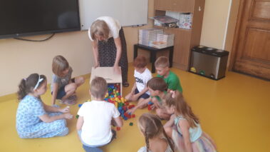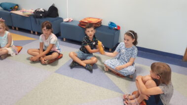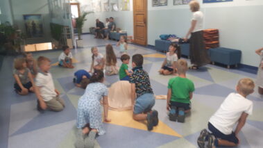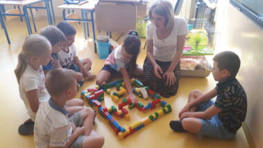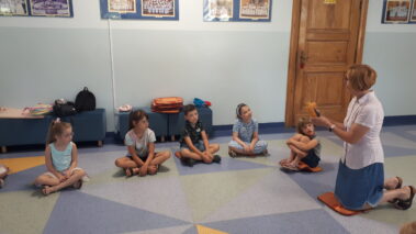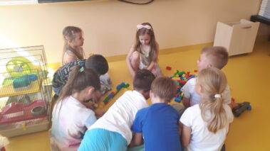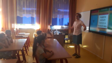 26 sierpnia to szczególny dzień dla klasy pierwszej. W tym jeszcze wakacyjnym dniu uczniowie klasy pierwszej wzięli udział w zajęciach integracyjnych, by poznać kolegów i koleżanki. Towarzyszyły im trzy panie: wychowawczyni, pani Elżbieta z klasy 2 oraz pani Edyta z klasy pierwszej. Dzieci spotkały się w kręgu i próbowały zapamiętać jak najwięcej imion rówieśników. Miały okazję, by poznać i pobawić się z chomiczkiem Elzą, która umila czas na świetlicy. Prócz tego brały udział z w zajęciach multimedialnych wykorzystując monitor interaktywny. Na zakończenie wszyscy spotkaliśmy się na zabawach z chustą Klanza. By miło nam się wychodziło ze szkoły każdy zabrał cukierki dla siebie i bliskich, soczki oraz książeczki. Wszystkie dzieci zapewniły, że czekają na rozpoczęcie roku szkolnego.