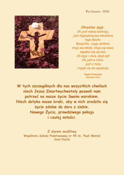 kwi120262025/2026Aktualności Celebracja wielkopostna z przepiękną oprawą muzyczną w wykonaniu naszych uczniów, przy ogromnym wsparciu s. Małgorzaty Jarosz oraz p. Anny Sermet: Kategorie: 2025/2026, Aktualności1 kwietnia 2026Nawigacja wpisówPoprzedniePoprzedni wpis:Zapraszamy do włączenia się w Szkolną Akcję Ekologiczną z okazji Światowego Dnia Ziemi