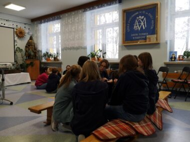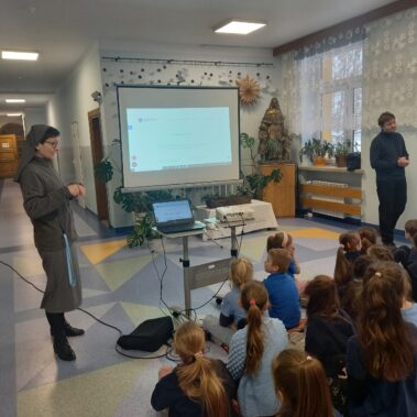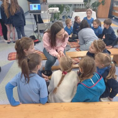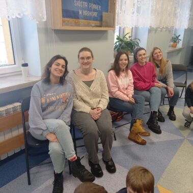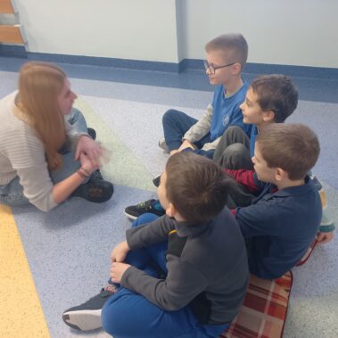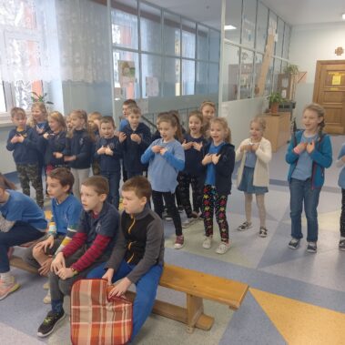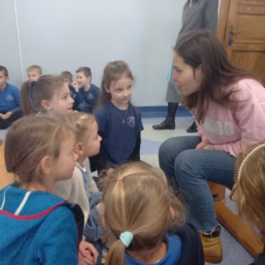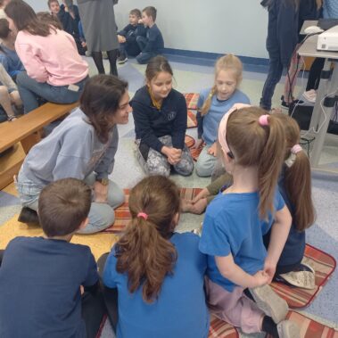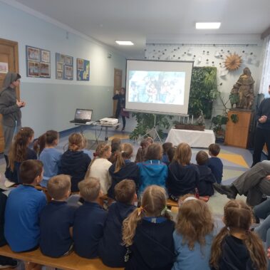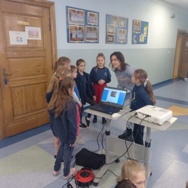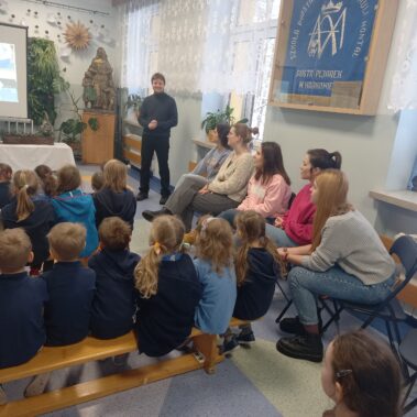 W poniedziałek 12 grudnia 2022r. naszą szkołę odwiedziła pięcioosobowa grupa przyszłych pedagogów z Chorwacji, Niemiec i Hiszpanii w ramach mobilności studenckiej programu Erasmus+. Studentki z Europy rozpoczęły swoją wizytę od spotkania z najmłodszymi uczniami. Na powitanie klasa pierwsza zaśpiewała piosenkę „O dobrym świętym Mikołaju” wprowadzając naszych gości w zachwyt. Następnie studentki zostały zaznajomione z organizacją pracy w katolickiej, polskiej szkole. Ostatnia część spotkania z uczniami edukacji wczesnoszkolnej poświęcona była porozumiewaniu w języku angielskim. Dzieci zostały podzielone na niewielkie grupki, którym przewodziły studentki. W kolejnej części spotkania, tym razem z uczniami klas 6 -8 nasi goście opowiadali o swoim kraju i jego tradycjach świątecznych i adwentowych. Druga część spotkania poświęcona była rozwijaniu umiejętności komunikowania się w językach kraju gości. Uczniowie podzieleni na grupy prowadzili rozmowy w języku angielskim, niemieckim oraz hiszpańskim. Obecność gości z zagranicy przyczyniła się do przełamania bariery językowej przez naszych uczniów. Spotkanie dało uczniom możliwość używania i doskonalenia języka obcego w praktyce, a nie tylko na lekcjach.
