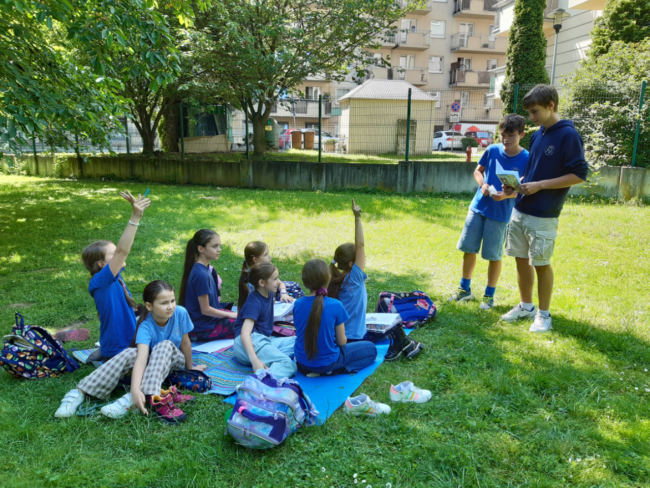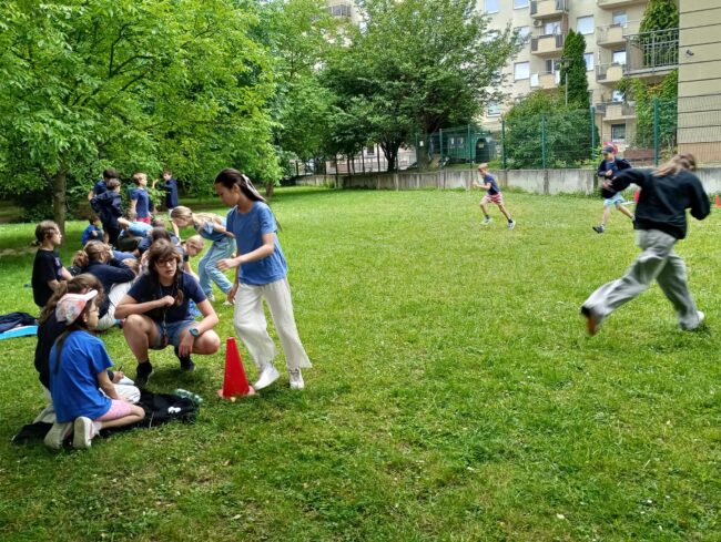 Korzystając z pięknej pogody, dzieci w świetlicy spędzają czas na świeżym powietrzu, grają w gry zespołowe, odpoczywają na kocach, biegają, skaczą, robią “gwiazdy” i obserwują przyrodę. Udało się im spotkać…